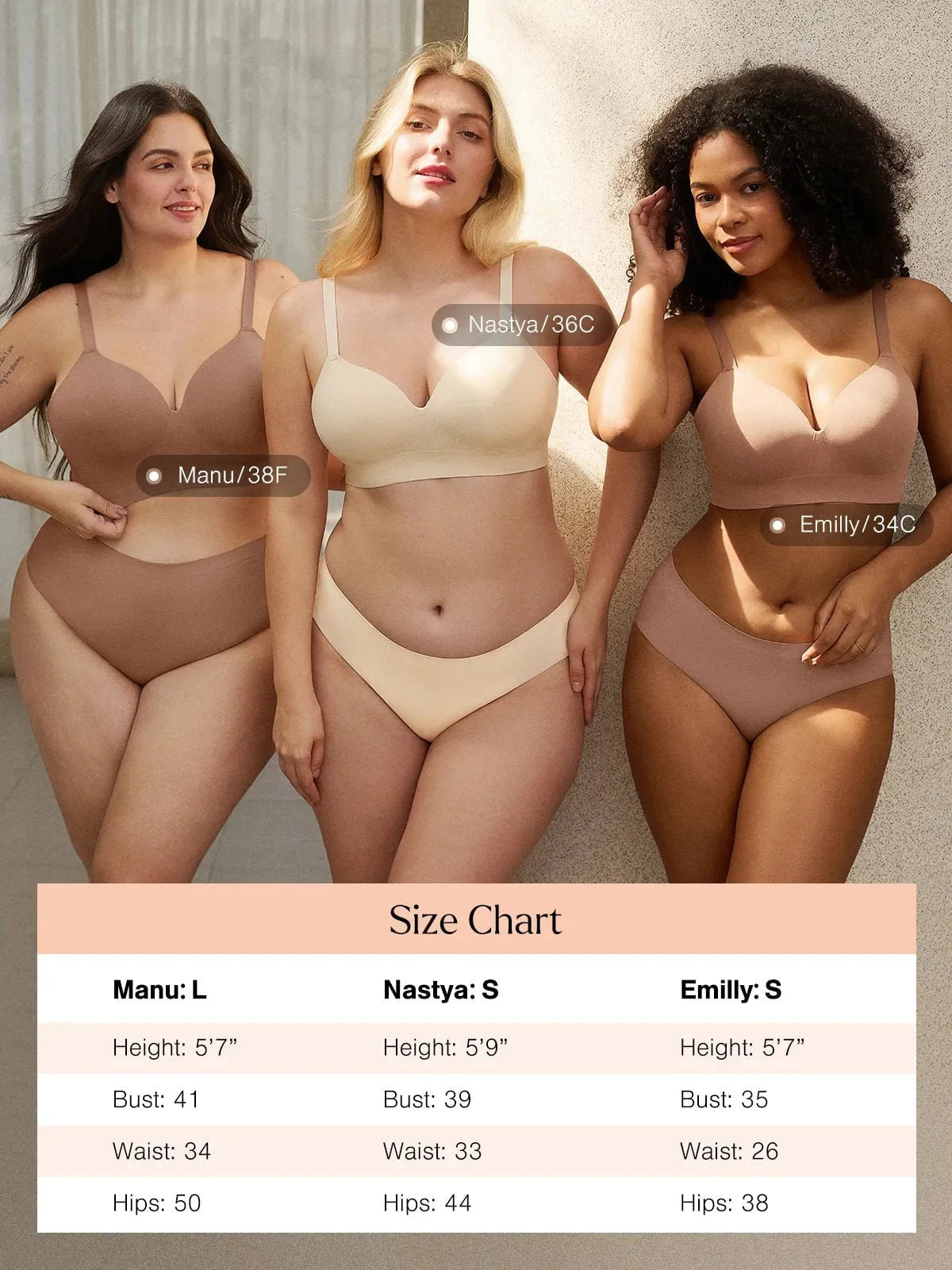 • One-Piece Molded Foam Cups: Featuring modern, one-piece molded foam cups that gently sculpt and lift for a naturally smooth, rounded shape. This innovative seamless design eliminates visible lines, bulges, and cup separation for a truly invisible look under any outfit. Made for all-day comfort, the wide bottom band provides added support and reduces movement—perfect for everyday wear with a flawless fit.