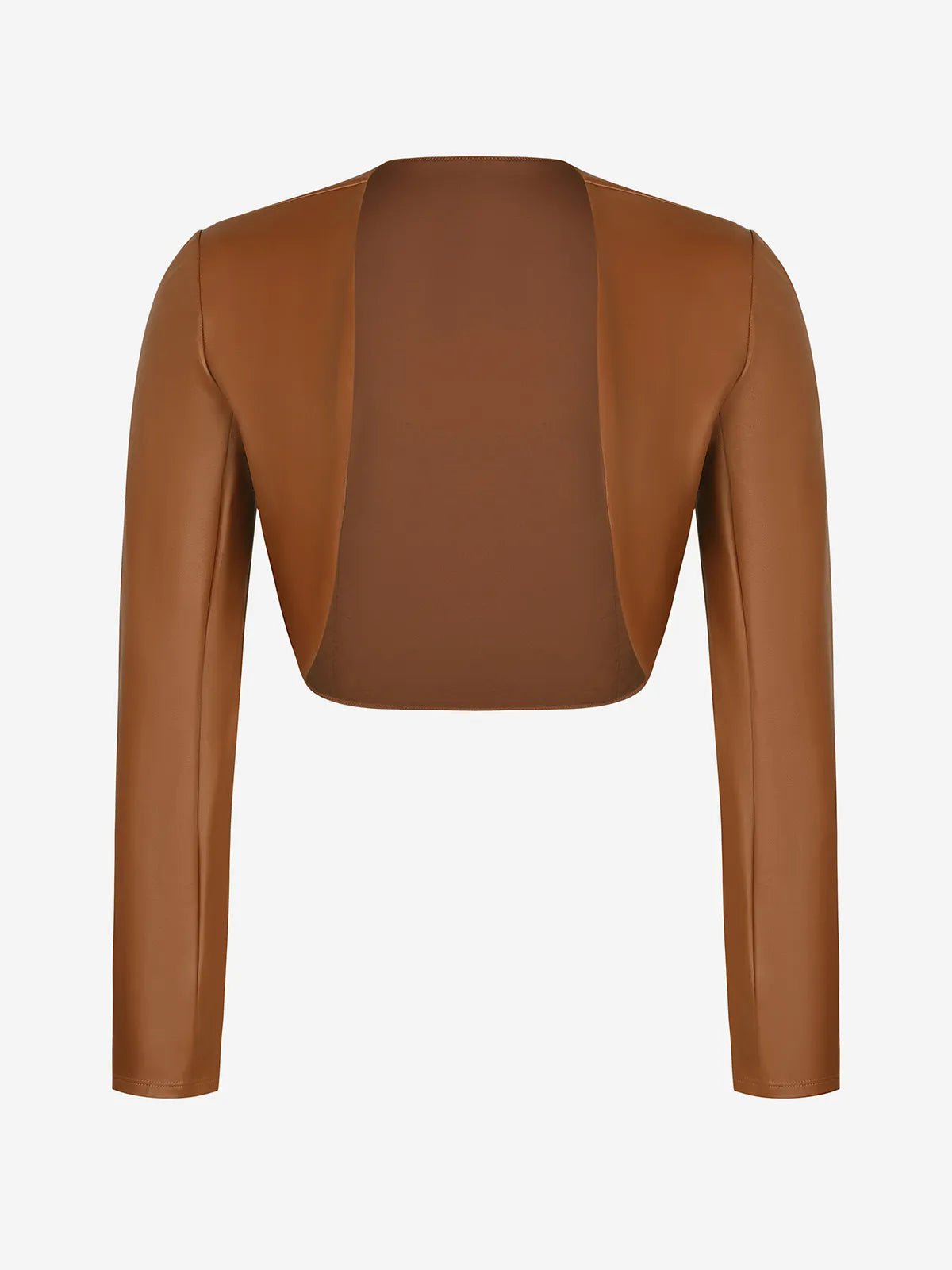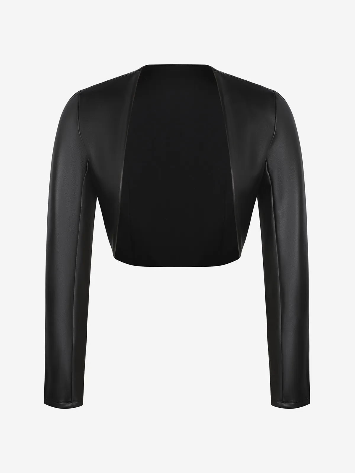 The Popilush Long Sleeve Faux Leather Bolero Jacket pairs seamlessly with skirts, pants, and jumpsuits, making it a versatile choice for various occasions—from work to outings, gatherings, casual wear, and even dates.