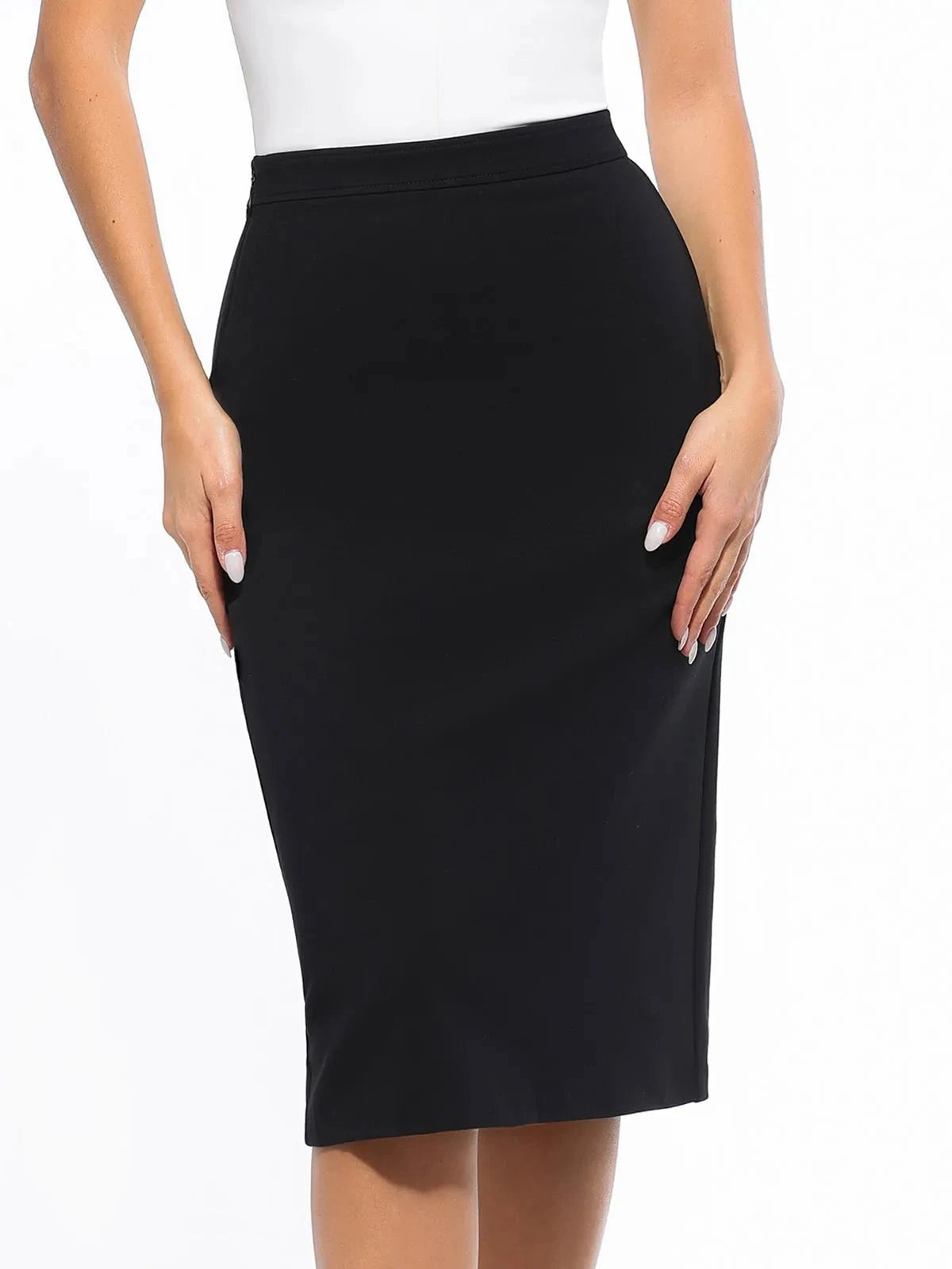 The invisible side zipper allows for easy wear and removal, while the back vent design ensures freedom of movement. It pairs perfectly with matching tops from the same collection.