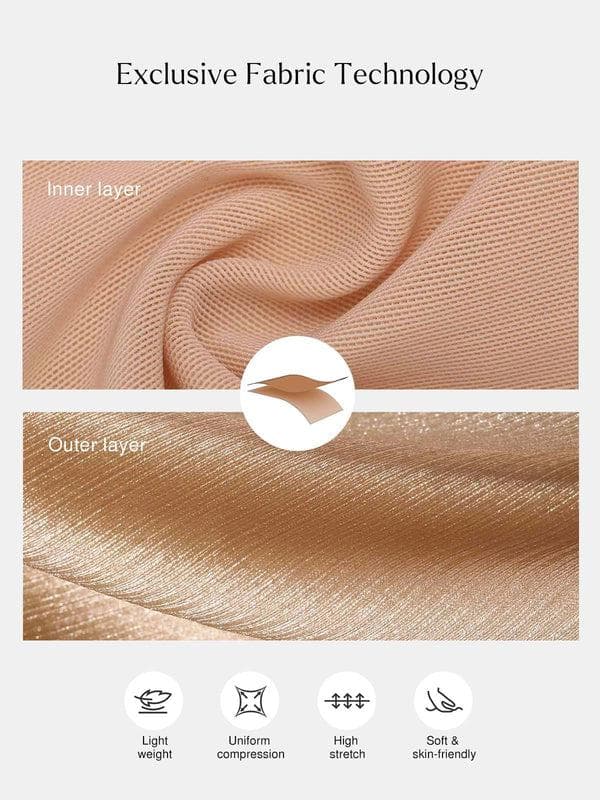 Combining outerwear with built-in shapewear: Waist & Thigh Contouring, inner shaping shorts feature compression mesh (double-layer abdominal panels) to smooth and sculpt; Integrated Support, underbust elastic with removable cups provides bust shaping; Hygienic Comfort, cross-over cotton gusset eliminates underwear needs; Seamless Technology, laser-cut edges prevent visible lines.