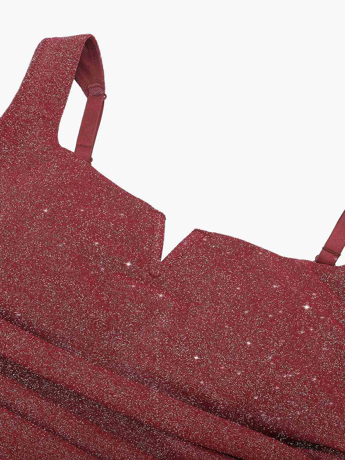 Shapewear Ruched Metallic Knit Square Neck Slimming Bodysuit